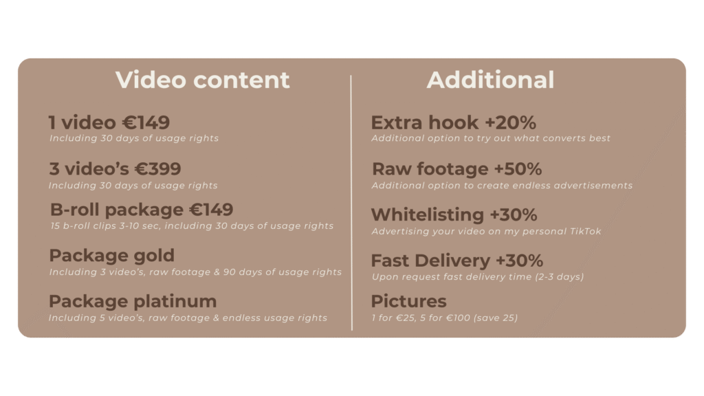 Op zoek naar een UGC aanbod of pakket op maat? Boek een gesprek om je wensen te bespreken!